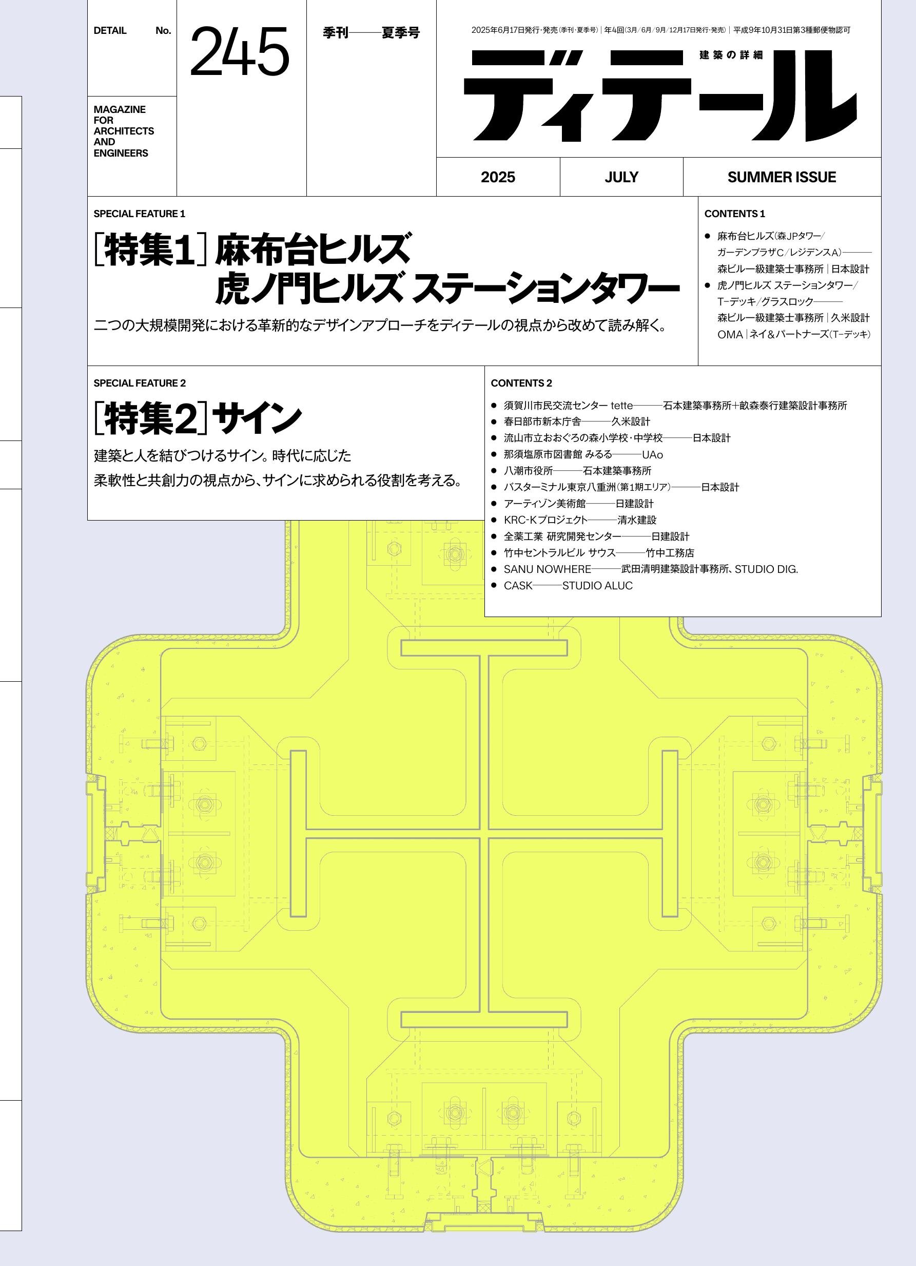 ■ 特集1「麻布台ヒルズ 虎ノ門ヒルズ ステーションタワー」 [鼎談 都市と街に対峙するサーフェスデザインとディテール」加藤弘治/日本設計+横田順/久米設計+押野見邦英/k/o design studio/「麻布台ヒルズ 森JPタワー/ガーデンプラザC/レジデンスA」森ビル一級建築士事務所+日本設計/「虎ノ門ヒルズ ステーションタワー/T─デッキ/グラスロック」森ビル一級建築士事務所+久米設計OMA+ネイ&パートナーズ(T─デッキ)